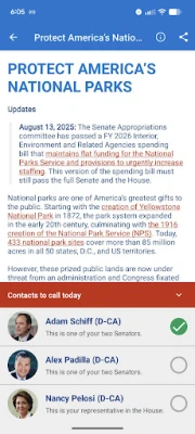 - Uses your location to find your local representatives so your calls have more impact