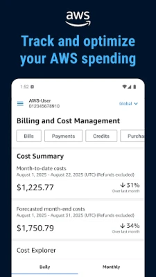 The AWS Console Mobile Application, provided by Amazon Web Services, lets you view and manage a select set of resources and receive push notifications to stay informed and connected with your AWS resources while on-the-go.