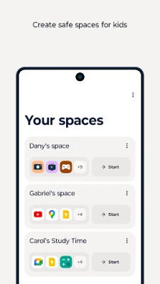 Spaces: For the youngest members of your family who are not ready for their own devices but you find opportunities to lend your device to them. Simply pass your phone to your little ones, and rest assured they only access the selection of apps that you've deemed suitable for their age. Say goodbye to accidental message replies, in-app purchases or inappropriate content – it's all about safe, educational fun!