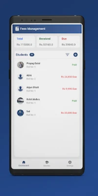 - Showing total fees, received fees, due fees amount