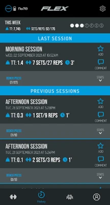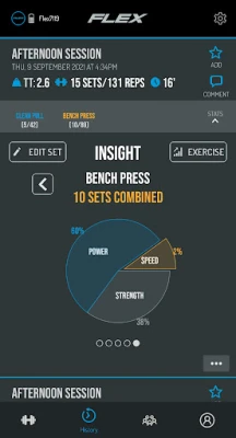 Create connections in the FLEX community so you can browse their training history, download sessions (complete with their results), send workouts, train in groups. View session data live as it is uploaded set by set, and interact with fist bumps and comments directly on the platform.