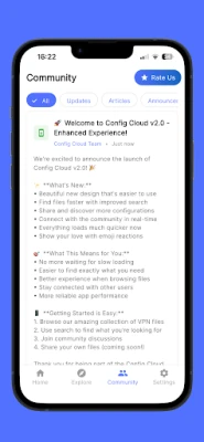 4. Community-driven Platform: Join a vibrant community of VPN enthusiasts and contributors. Share your own configurations, tips, and tricks, or engage with fellow users to exchange knowledge and insights, fostering a collaborative environment for all.With ConfigCloud, take control of your online privacy and security like never before.