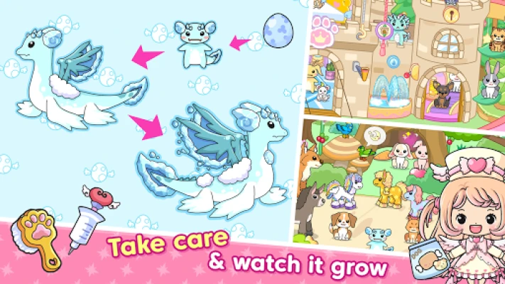 - Some pets can grow, such as horse, unicorn, dragon. Take care of them and watch them grow.