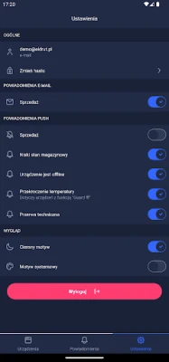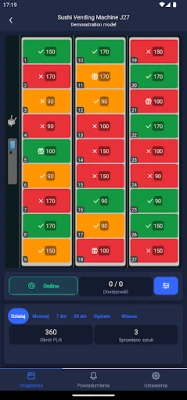 Podgląd urządzeń, stan zapełnienia, status urządzenia oraz raport sprzedażowy z urządzeń MultiVend 24 EA Eldrut Automatics.