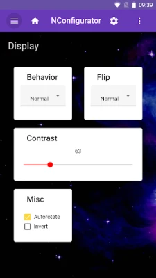 * Display: Allows you to adjust display behavior, including brightness, orientation, and Double-tap Actions.
