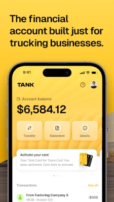 Tank Payments is a fully featured financial account built specifically for freight carriers.