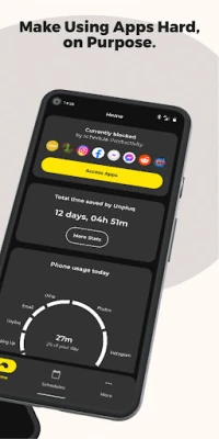 - Unblock apps by making a conscious decision with an Unpluq distraction barrier