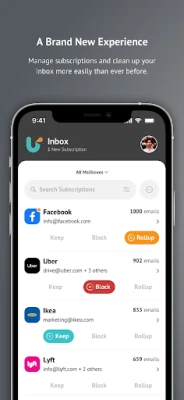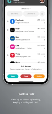 • Block, keep, and rollup your subscription emails, either in bulk or individually.